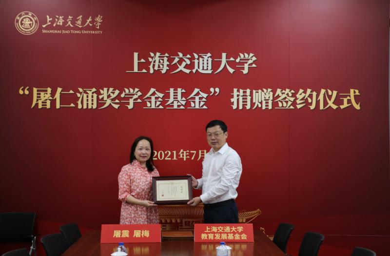 上海交通大學(xué)1956屆動力機(jī)械系校友、機(jī)械與動力工程學(xué)院屠仁涌教授的兒子、1986屆精密儀器系校友屠震與女兒屠梅,為弘揚(yáng)父親對教育事業(yè)的赤誠之心,助力學(xué)校發(fā)展,慷慨捐贈人民幣100萬元,用于設(shè)立“屠仁涌獎學(xué)金”基金,獎勵上海交通大學(xué)品學(xué)兼優(yōu)的動力機(jī)械專業(yè)、精密儀器專業(yè)本科生和研究生。